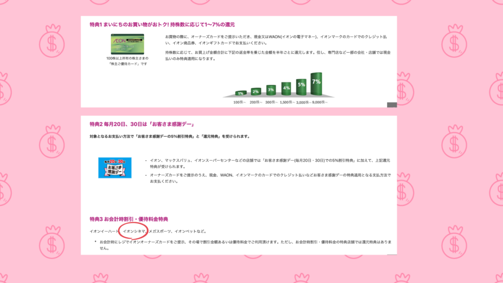 イオンの株主優待は、大きく分けて3つの特典があります。