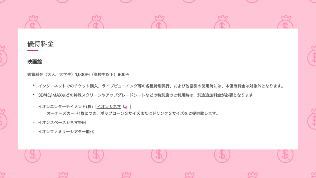 - 映画料金の優待
