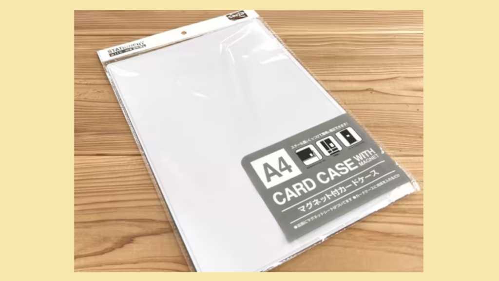 そんな我が家で最近活躍しているのが、セリアのマグネット付きカードケースです。